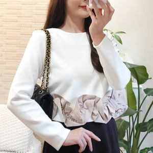 【とろぷり生地がクセになる】つやポンチ・フリルクロップドブラウス