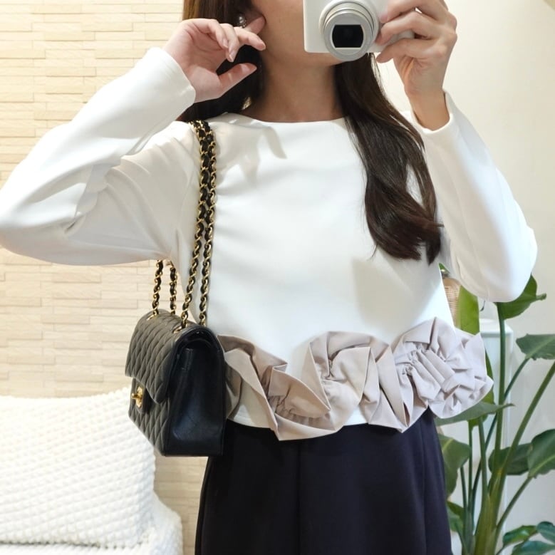 ブロード生地のフリルを贅沢にあしらった、モードなクロップド丈ブラウス。