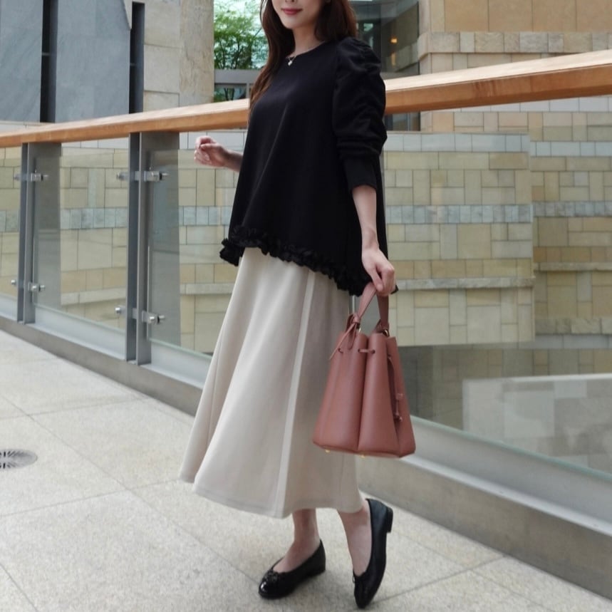 ・波打つフリルヘムで目線アップ→脚長バランス