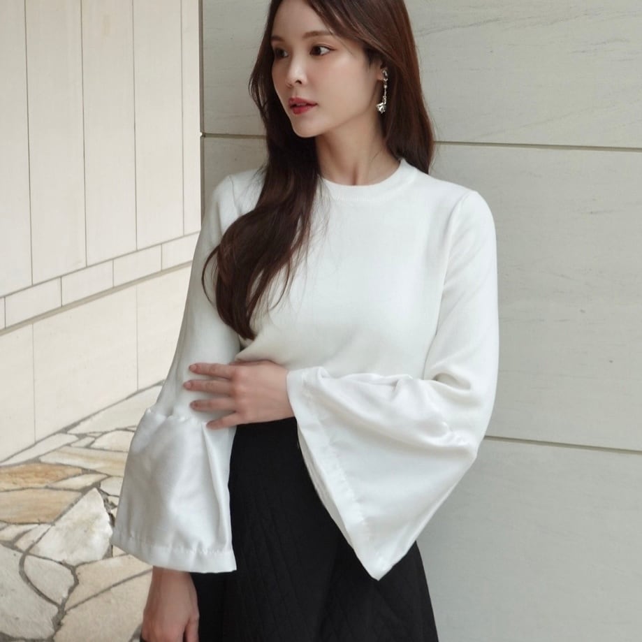・上品なほの艶と、ふわっと広がるフレア袖で女性らしく